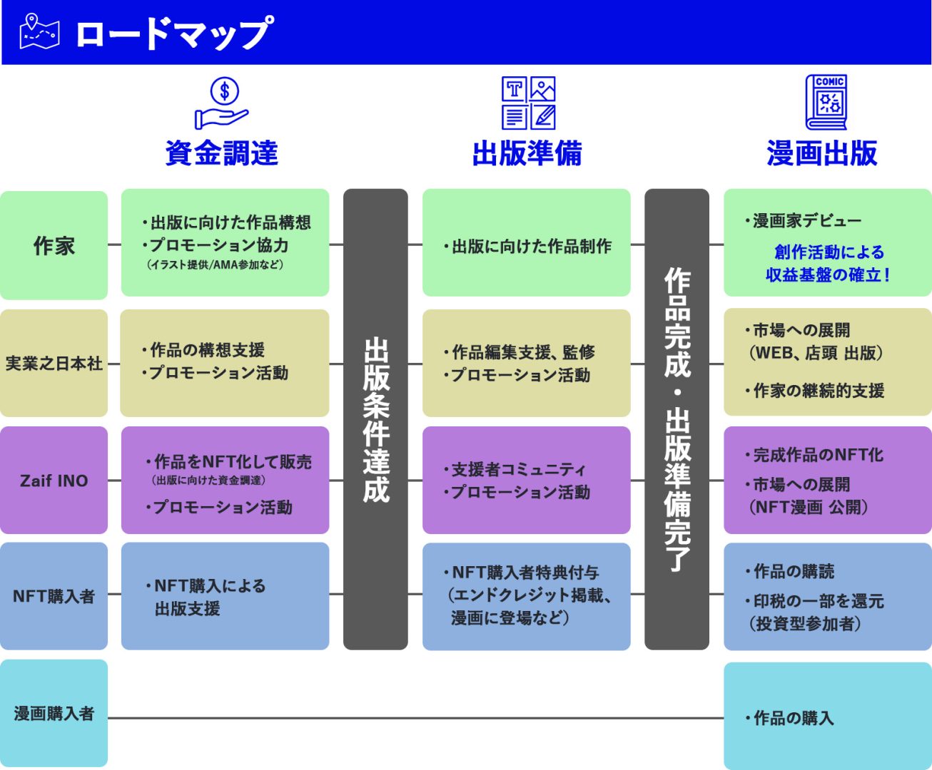 本プロジェクトは、ブロックチェーン技術を活用して、読者の応援を力に作品を世に送り出す新しい出版モデルです。漫画の企画をNFTとして販売し、ファンが購入・応援。応援総数に応じて商業出版が決定する仕組みで、クリエイターと読者が共に創作を支える未来を実現します。 多くの漫画家さんにとって作品を生み出し生活し続けていくことは高いハードルです。優れた作家さんであっても自分が描きたい作品を出版することは、簡単なことではありません。このプロジェクトは、漫画家さんと読者の新たな関係性を構築し、新人からベテランの作家さんまで幅広くたくさんの作家さんが新たな作品創出をしやすい環境を目指しています。 商業・同人問わず、漫画のネーム制作経験がある方 継続的に作品制作ができる環境のある方 年齢・実績不問(未経験歓迎) ご応募後、運営チームが作品を選考し、通過者には個別面談にて詳細をご説明いたします。 STEP 1: エントリーフォームから応募STEP 2: 作品・経歴などの選考STEP 3: 個別面談とプロジェクト説明STEP 4: 契約締結後、制作スタート NFTやブロックチェーンに詳しくありませんが、大丈夫ですか? 問題ありません。運営が技術面を完全サポートしますので、知識不要でご参加いただけます。 報酬はありますか? NFT販売による収益、ロイヤリティ、出版に伴う印税など、複数の報酬機会があります。 応募に費用はかかりますか? 一切かかりません。選考・参加は完全無料です。 ©︎ 2025 CAICA Finacial Holdings.